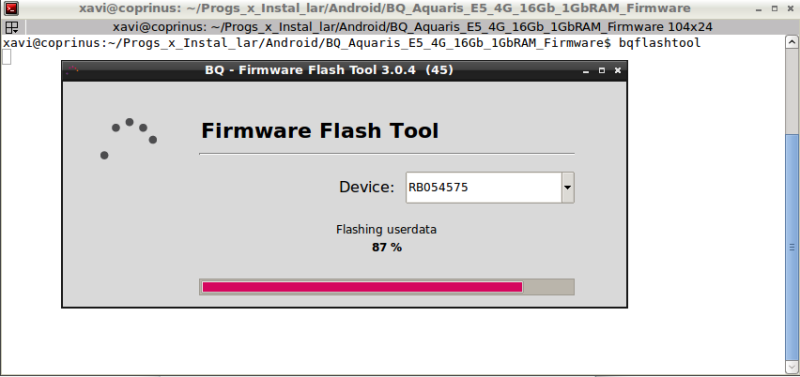 170722 Bq Aquaris E5 Flash Tool Ubuntu 04 Flashing Progress Bar